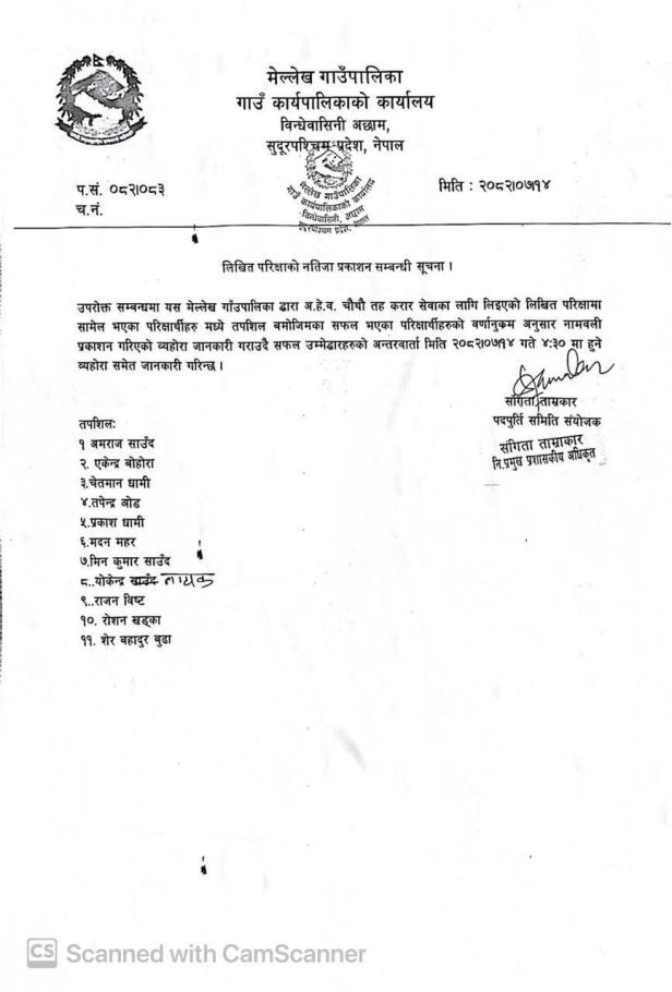 लिखित परीक्षाको नतिजा प्रकाशन सम्बन्धी सूचना ।
