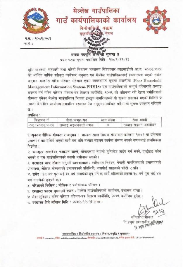 गणक पदपूर्ति सम्बन्धी सूचना ।