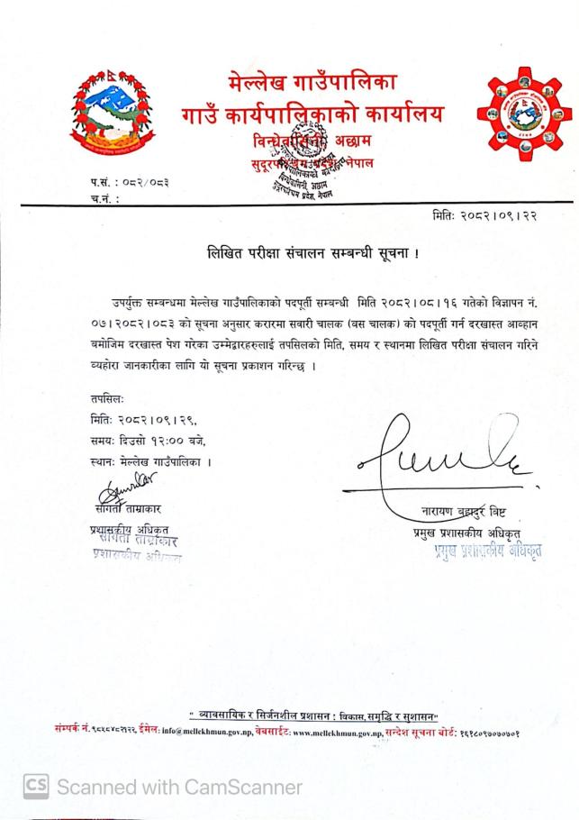 बस चालकको परीक्षा संचालन सम्बन्धी सूचना ।